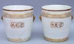 #180: PAIR OF PARIS PORCELAIN JARDINIERES Each with gilt rings & lion's head handles
