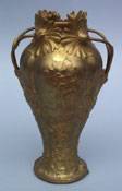 ART NOUVEAU GILT BRONZE VASE, SIGNED LANGLOY The quatrefoil lobed bowl cast with chrysanthemum