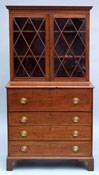 #229: FEDERAL MAHOGANY SECRETARY BOOKCASE The dentil molded cornice above a pair of glazed