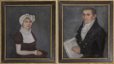 Kornblau opened a gallery in Manhattan in the late 1950s and quickly developed a reputation for carrying distinctive, rare and unusual examples of American folk art at a time when interest in American naïve painting and sculpture, material culture and vernacular crafts was starting to burgeon. Museums hosting exhibitions on American folk art invariably included an example that originated with Gerald Kornblau. At the Winter Antiques Show, the very best examples of American folk art were always to be found in Kornblau’s booth. At the 1975 show, Kornblau proudly débuted the c.1812-1813 portraits of Ashbel and Patience Stoddard, residents of Hudson, NY, attributed to Ammi Phillips.
