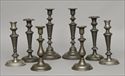 Lot #11: FOUR PAIRS OF PEWTER CANDLESTICKS