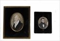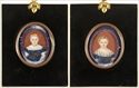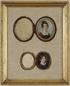Gouache on ivory, depicting a young woman, 2 1/2 x 2 1/8 in. or a young boy, 1 7/8 x 1 3/8 in. mounted together in an 11 X 9 in. frame.