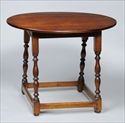 The oval top over rectangular apron, on vase and ring-turned legs joined by box stretcher; 24 1/2 x 30 x 23 in.