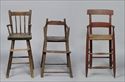 Including a brown-painted spindle back, a red-painted slat back and a red-painted pine high chair; 27 to 32 3/4 in.
