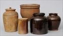 Lot #425: TWO BROWN-GLAZED POTTERY BEAN POTS AND THREE OTHER POTS