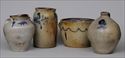 Including a jug and three crocks, each with cobalt decoration; 9 to 12 in.