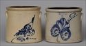 One stamped "Pokeepsie [sic], N.Y.," with cobalt decoration of a bird; the other stamped "F.B. Norton & Co., Worcester, Mass.," with cobalt decoration of flowers and leaves; 11 1/4 to 11 3/4 in., 11 1/2 to 12 in. diam.
