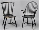 Lot #481: WINDSOR BLACK-PAINTED CONTINUOUS ARM BOW-BACK CHAIR AND A WINDSOR BLACK-PAINTED FAN-BACK SIDE CHAIR