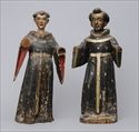 Lot #486: TWO POLYCHROME CARVED WOOD SANTOS FIGURES OF SAINTS