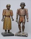 Lot #488: TWO POLYCHROME CARVED WOOD FIGURES OF A MAN AND A WOMAN, POSSIBLY SOUTH AMERICAN