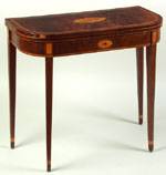 #315: LATE GEORGE III INLAID MAHOGANY GAMES TABLE The D-shaped folding top with oval lobed shell