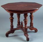 #316: VICTORIAN OAK-INLAID WALNUT OCTAGONAL-TOP CENTER TABLE The molded slightly over hang top on 4 urn & foliate