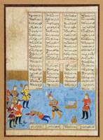 #546: PERSIAN PAINTED MANUSCRIPT: "ASSASINATION OF NOZAR BY AFRASIYAB" Sheet: 11 1/2 in. x 7 1/2 in. Estimate: 75.00 - 125.00 Sold at $200