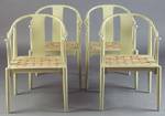 #548: 4 TAN LACQUER MING - STYLE ARMCHAIRS, AFTER MIES VAN DER ROHE Each tab-back crest above solid spoon-shape splat,
