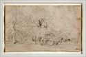 Pencil on paper, 3 1/4 x 5 1/4 in., initialed lower right.