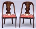 Each back with husk-hung urn and s-scroll arms ending in leaf