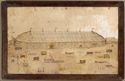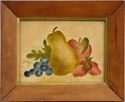 Watercolor on velvet depicting a pear, grapes, strawberries