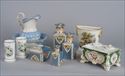 Together with a Paris porcelain four-piece dresser set, pair of porcelain spill vases and an ironstone wash basin and pitcher; encrier 5 x 8 x 5 in.