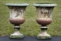#37: PAIR OF PAINTED CAST IRON CAMPANI-FORM URNS