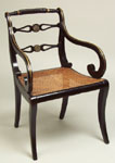 #174: REGENCY BRASS-MOUNTED BLACK PAINTED ARMCHAIR