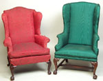 #173: TWO CHIPPENDALE-STYLE CARVED MAHOGANY WING ARMCHAIRS