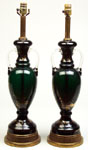 #69: PAIR OF GILT DECORATED GREEN GLASS OVOID URN-FORM