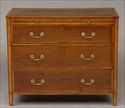 The satinwood cross-banded top above an arched 3-drawer front with 1/4-round flowerhead brackets, on square, tapered legs ending in spade feet; 37 1/2 in. x 6 ft. x 24 1/2 in.