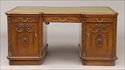 The reverse breakfront top with tooled green leather panel above 3 frieze lattice drawers at each front and 2 lateral slides, each pedestal with a door at each front with applied husk swags and oval fans; 29 1/2 in. x 5 ft. 2 in. x 38 1/2 in. Provenance: Property from the Childs family collection, removed from “Florham,” Madison, New Jersey, the 100-room mansion designed by McKim, Mead & White for Florence Vanderbilt Twombly and her husband, Hamilton Twombly. The building is now part of Fairleigh Dickinson University.