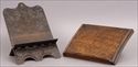 Lot #701: RENAISSANCE-STYLE RELIEF-CARVED OAK BOOKREST AND BURR WALNUT REST