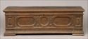 The hinged top above a front panel carved with leaf-tip rondel and ovals, spaced by tulip stems and fluted ovals, fluted borders, short feet; 22 3/4 x 5 ft. 9 in. x 23 in.