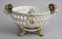 The oval bowl pierced with s-scrolls centering floral ovals,