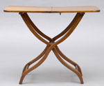 #37: EARLY VICTORIAN MAHOGANY COACHING TRAY The hinged top on folding legs & joined by turned stretcher; 27 1/2 x 33 1/2 x 16 3/4 in.