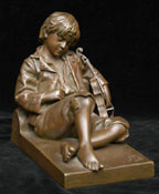 #91: BRONZE OF A CHILD VIOLINIST, AFTER THAREL Signed & with Susse Freres foundry mark; 6 1/2 x 8 in. Estimate: $ 800.00 - $ 1200.00 Sold at $ 400.00