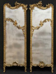 #117: PAIR OF CONTINENTAL ROCOCO GILTWOOD PIER MIRRORS The shaped cresting above a central plate & carved border, ending in small cabriole feet; 62 x 21 1/2 in. Estimate: $ 800.00 - $ 1200.00 Sold at $ 1,500.00