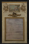 #120: LOUIS XVI CARVED, PAINTED AND PARCEL-GILT TRUMEAU The plate within bead-and-reel & ribbon twist surround, beneath a bowknot branch, pendant music trophies & a painted canvas; 58 x 35 1/2 in. Estimate: $ 800.00 - $ 1200.00 Sold at $ 1,500.00