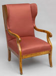 #289: BIEDERMEIER FRUITWOOD WING ARMCHAIR The wings upholstered on the inner face, S-form arms on down-swept supports & the seat on splayed legs; 44 x 26 1/4 x 20 1/2 in. Estimate: $ 500.00 - $ 700.00 Sold at $ 375.00