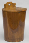 #290A: BIEDERMEIER WOOD BIN Of tapered cylindrical form, hinged lid, 29 1/4 in. tall & 19 3/4 in. diam. at lid; losses to veneer at cresting. Estimate: $ 300.00 - $ 500.00 Sold at $ 325.00