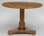 #291: BIEDERMEIER BIRCH CENTER TABLE The circular fixed top on stepped hexagonal pedestal with ebonized molding & concave-sided base. 29 3/4 in. x 39 5/4 in. Estimate: $ 1500.00 - $ 2500.00 Sold at $ 1,600.00