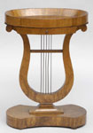 The tray top above a drawer & lyre-form support with metal strings; 30 x 21 1/4 x 15 in. Estimate: $ 600.00 - $ 800.00