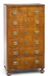 #296: BIEDERMEIER BIRCH VENEERED CHIFFONIERE The stepped top above a case fitted with five drawers with ebony pulls & inlaid escutcheons; the whole raised on bracket feet; 5 ft. x 40 in. x 19 1/4 in. Estimate: $ 1500.00 - $ 2500.00