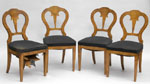 #303: SET OF 4 BIEDERMEIER-STYLE WALNUT SIDE CHAIRS Each balloon back with lobed crest, the seats with plain rails & square tapered leg; 38 1/2 in. tall. Estimate: $ 500.00 - $ 700.00 Sold at $ 600.00