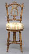 #421: VICTORIAN WOOD GRAINED AND PARCEL-GILT PIANO CHAIR Estimate: $ 150.00 - $ 250.00 Sold at $ 250.00