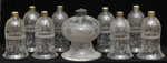 #426: ENGLISH ENGRAVED GLASS HURRICANE SHADES AND A LANTERN