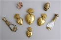 GOLD-MOUNTED AGATE BOX, FOUR FLAMING HEART PENDANTS AND A