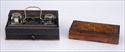 with a checkerboard-inlaid box; 3 1/4 x 9 1/2 x 6 1/2 in.