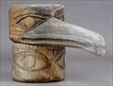 Carved in 2 parts of a bird's face with pronounced beak;