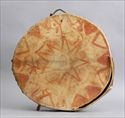 With tied hide surfaces and handle, painted in terracotta