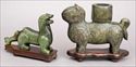 a bowl, the other a growling dragon, hardwood stands; 5 1/4