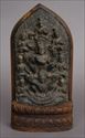 The pointed arch panel carved with 3 tiered divinities flanked