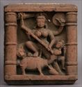 Depicting a 4-armed female deity flanked by a lioness above